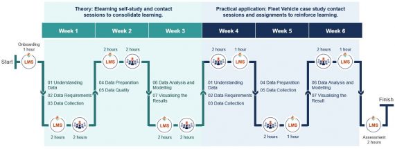 - Blended learning, with elearning and virtual classroom contact sessions.