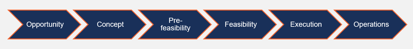 Most asset-related projects are managed through a stage-gate process, with typical stages listed in the infographic below.